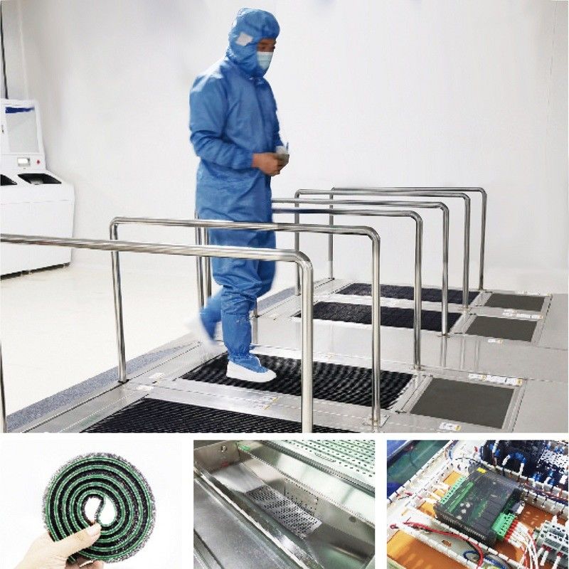 このスマートな,モーター駆動の靴洗浄システムは,足を引き上げることなく,1ペアあたりわずか3秒で 頑丈で多様な靴底を自動的に洗います.静電を消すこともできます完全に汚染を制御するために空気シャワーと組み合わせます.